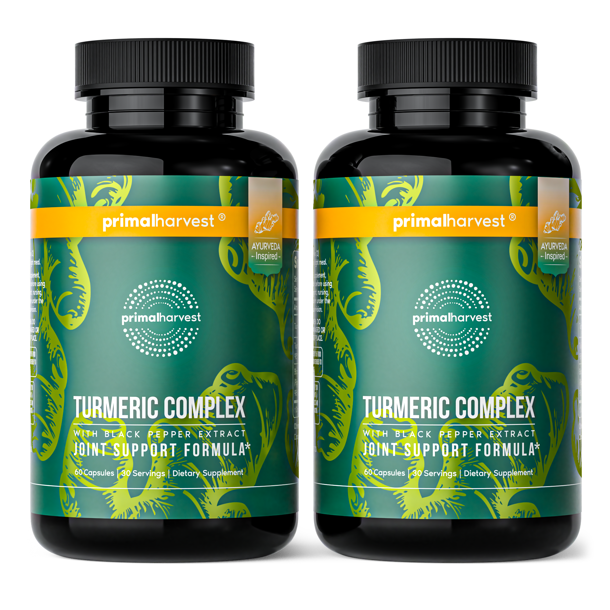 One bottle of Turmeric Complex contains a one-month supply. Turmeric Complex contains 30 servings per bottle. Each bottle contains 60 capsules, or 2 capsules per serving.